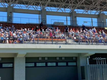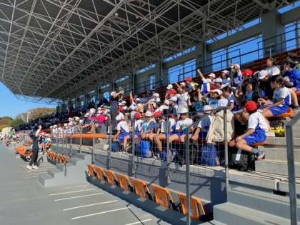 トラックと空の青さが眩しいです。とても綺麗な競技場です。