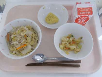 塩ラーメン 野菜のからし醤油和え はちみつスイートポテト 牛乳
