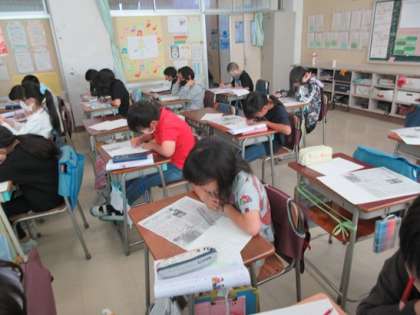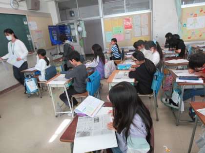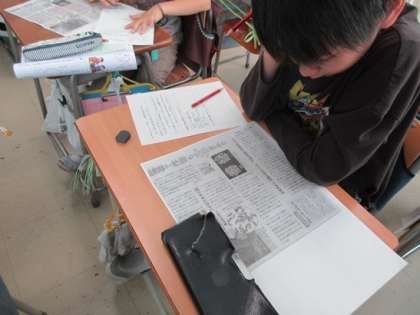 小学生新聞のコピーを使い、新聞を読むことを学習しています。