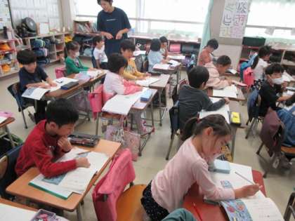 1年1組の国語の時間です。