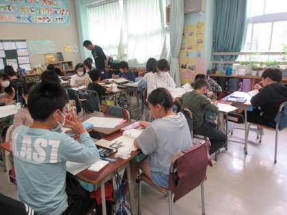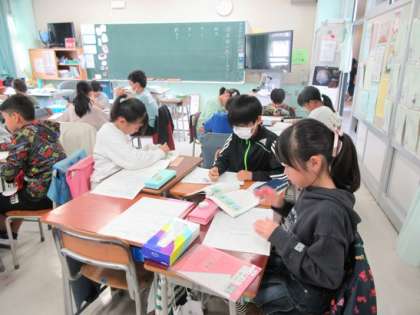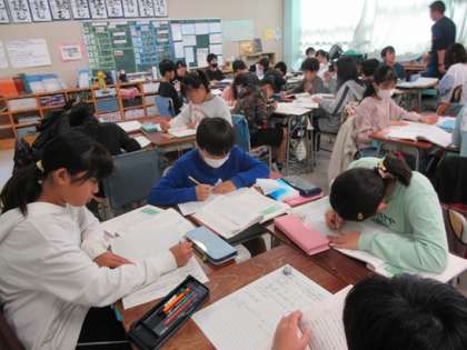説明文の整理をしています。友だちと意見交換をしながら整理をしていくようです。
