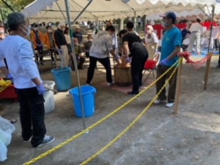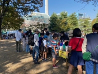 希望丘公園で地域のイベント、船橋ふれあいまつりが催されています。めばえのみなさんデバンデスの皆さん、町会の皆さんが出店されています。