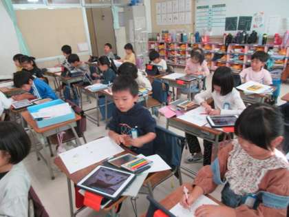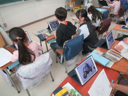 いろいろな働く車の中から、お気に入りの一台を選び、形や働きなどの特徴を整理しています。