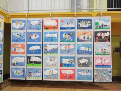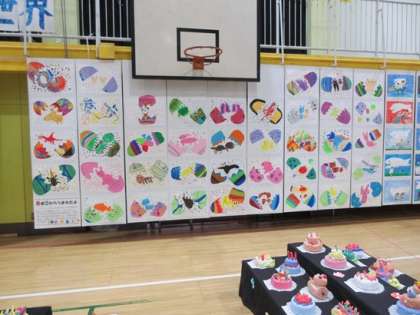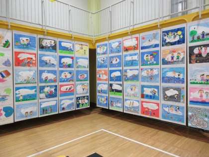 壁面には、「くじらぐも」と「ふしぎなたまご」の2種類の絵が展示されています。