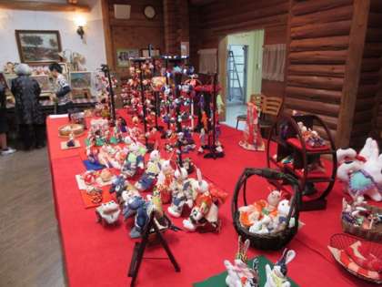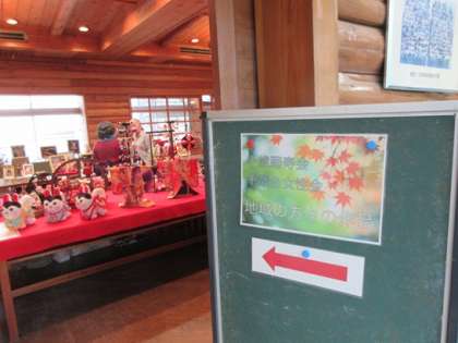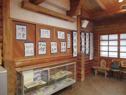 昇降口そばのログハウスには、今回も廻寿会より、展示作品を提供していただきました。