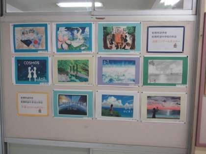 職員室前の廊下には、船橋希望中学校の生徒が合唱コンクールのために作成した、ポスターをお借りしてきて、展示しています。卒業生たちの作品は、さらなる成長を感じます。