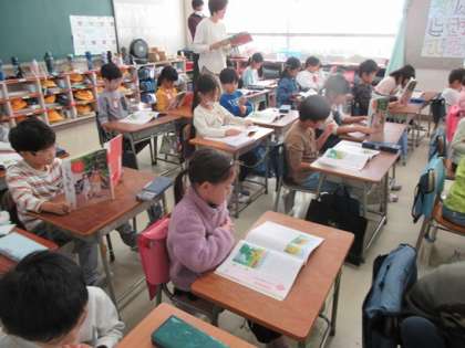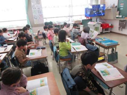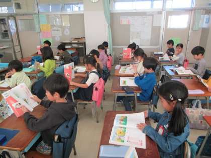 教科書のお話を聞き、自分の考え方を深めていきます。