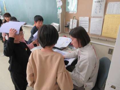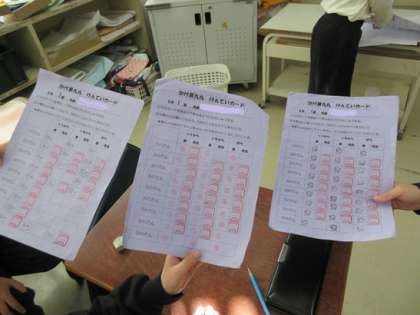 今日も九九検定をしています。九九のカードにはハンコがいっぱいたまりました。