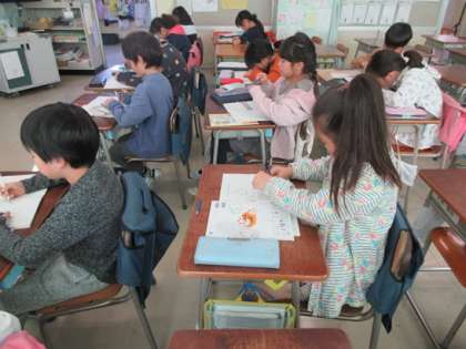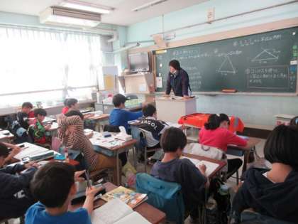 三角形の学習で、コンパスを使って作図の仕方を学びます。