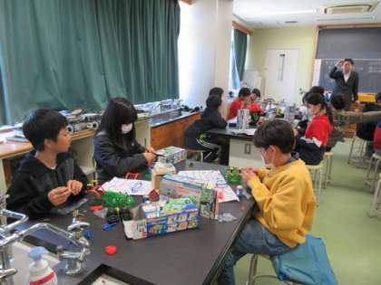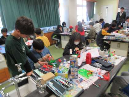実験用のキットを使い、電池の数による磁力の違いを確認しています。