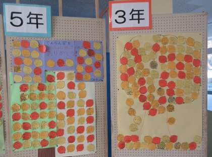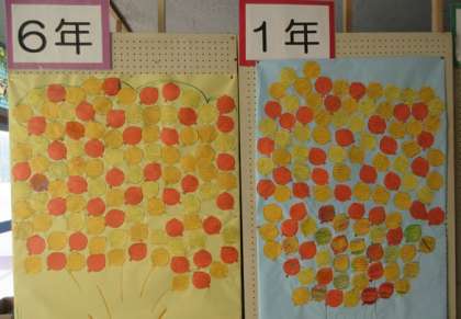 6年生と1年生、5年生と3年生、4年生と2年生で、展覧会の作品について、メッセージを書きました。