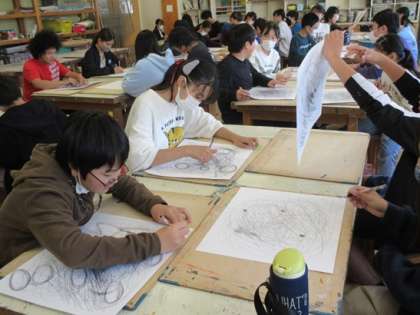 繰り返し、繰り返し描いていると、濃淡が出てきます。そこから何かが・・・。