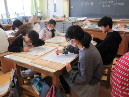 ボールペンを使い、画用紙にあまり意識せずに線を描いていきます。