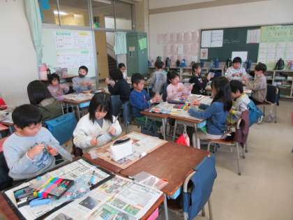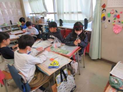 クリアファイルをいろいろな形に切ってみたり、ねじってみたりしています。