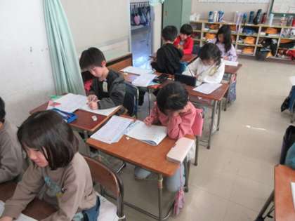 計算ドリルや教科書、タブレットなどを使い、2学期の学習の内容を確かめています。