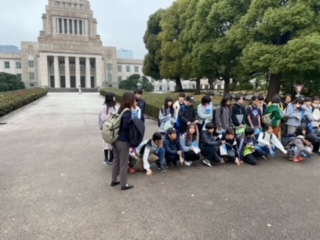 議事堂の前で記念写真を撮りました。