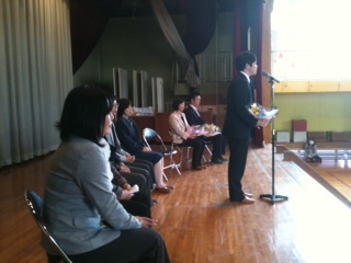 4/20離任式を行いました。長い間、千歳台小学校で、ご活躍頂いた先生方に、心を込めて、作文と花束をお送りしました。