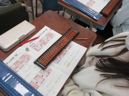 3・4年生の算数では、そろばんを使った、たし算・ひき算の方法について学習します。