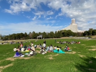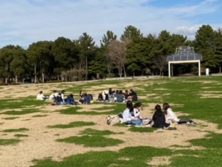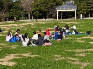 海底トンネル脇の潮風公園での昼食です。太陽も顔を出し青空も見えてきました。お弁当もいっそう美味しくいただきました。