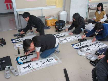4年2組の書初めの練習です。