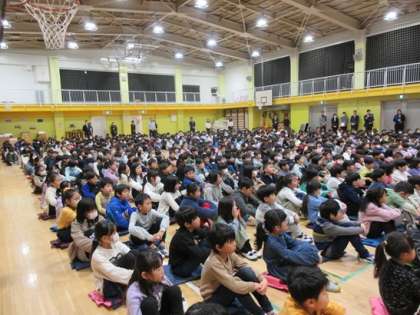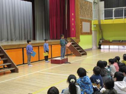 3学期の始業式を行いましら。代表児童の言葉は2年生が担当です。