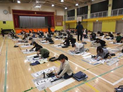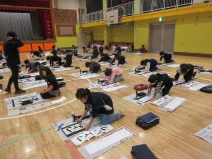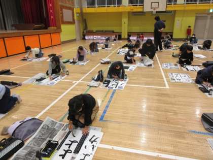 3・4時間目に3年生が書初め会を行いました。長い半紙に、ひらがなをかくのは意外と難しいです。力強く書くことができたでしょうか?