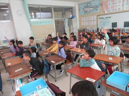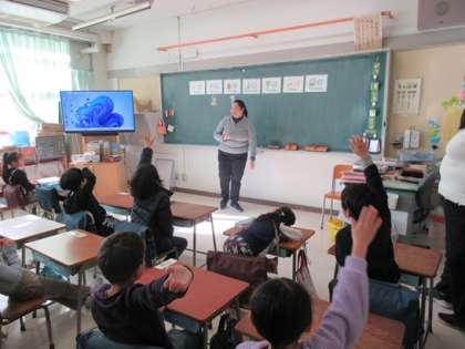 1年3組の英語活動の時間です。