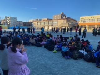 5年生は今日から冬川場交流です。天気の良いスタートとなりました。