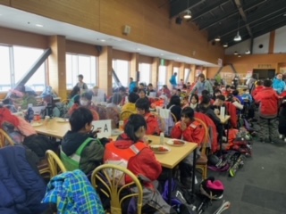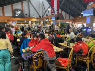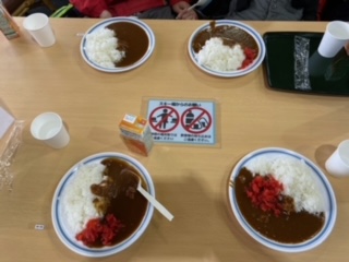 スキー場の食事といえばカレーライスです。今日は川場小の友だちと一緒なので、夕食のカレーとはまた味わいが違います