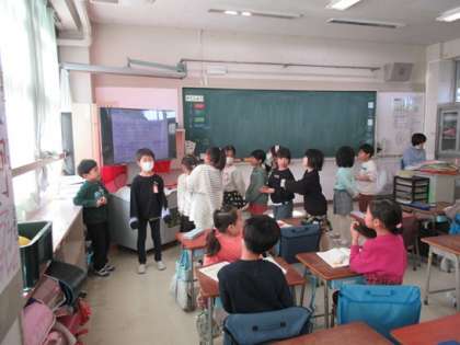 近々来校する、保育園の子ども達を歓迎する準備です。