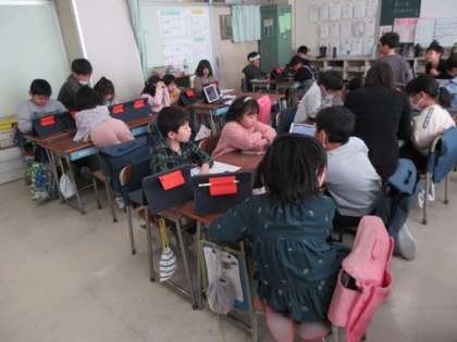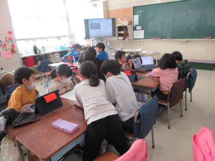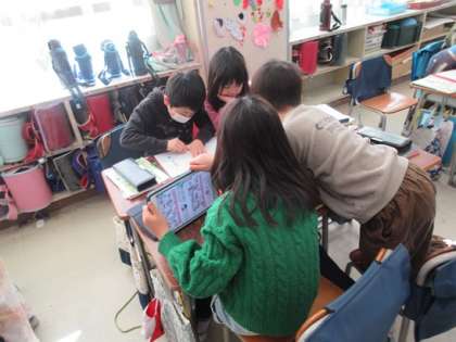 おにあそびの説明の仕方をグループで相談しながら考えています。
