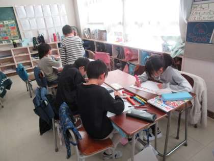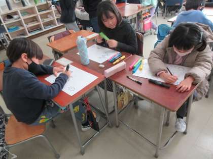 双六を作っています。出来上がり、みんなで遊ぶのが楽しみですね。