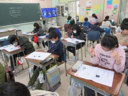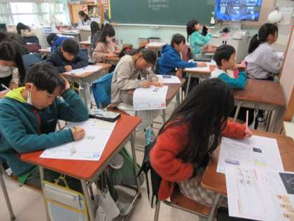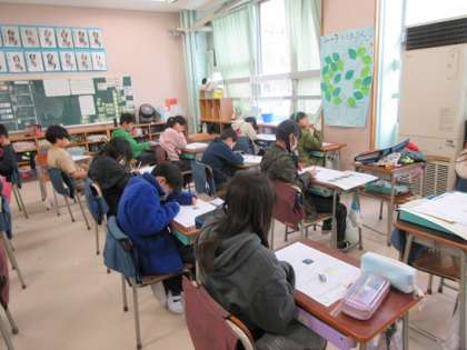 テストの時間でした。問題文をよく読み、丁寧な文字で答えを書いています。