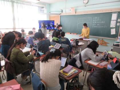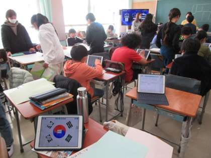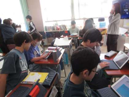 自分たちで国を選び、その国の特徴や特色について調べていました。