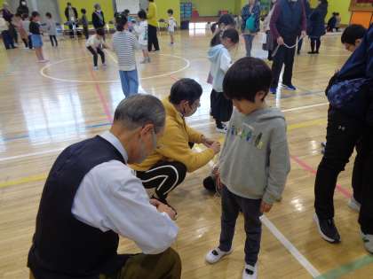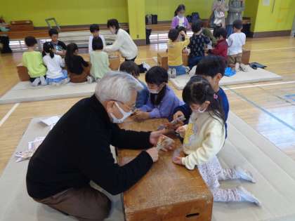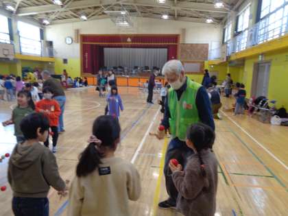 1年生は、地域の皆さんとけん玉やお手玉、コマ回し等の昔遊びを楽しみました。
