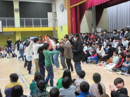 ドラえもんの歌を歌いながら、6年生と一緒に踊りました。