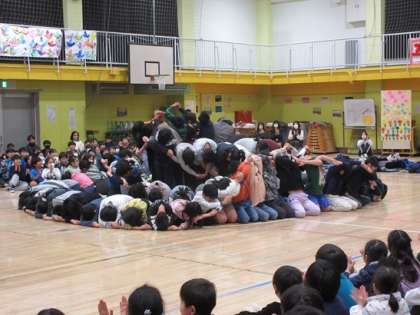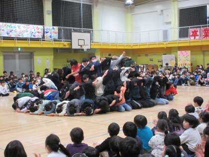 5年生は6年生が運動会で披露した、ウェーブで挑戦です。