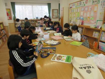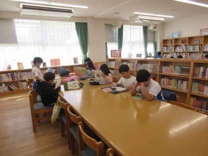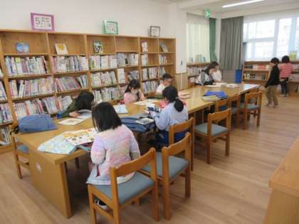 広くて明るい図書室では、落ち着いて読書をすることができます。