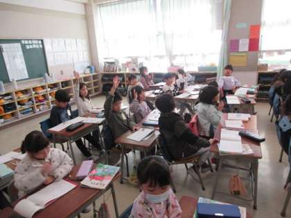 算数タイルから、ノートに〇を書き、式を考えていきます、