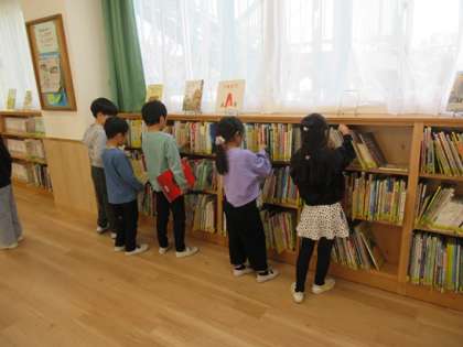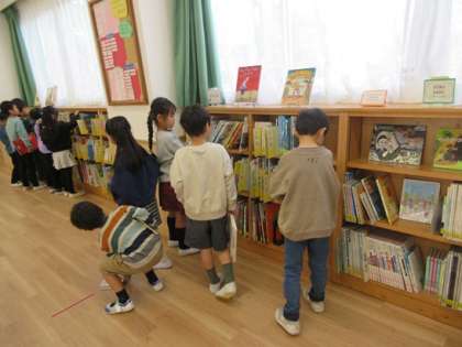 1年3組の図書の時間です。