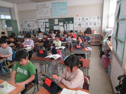 自分のことについて作文を書くために、1年間を振り返るメモをロイロノートで作成しています。