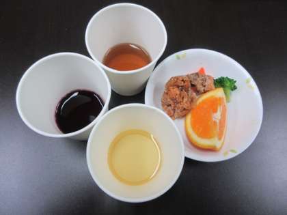 お茶、ぶどうジュース、りんごジュースから、セレクトです。