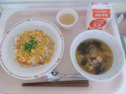ちらし寿司 手毬麩のすまし汁 ピーチゼリー 牛乳