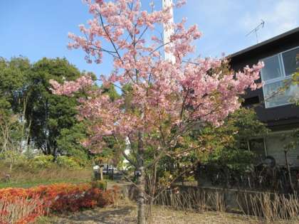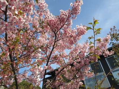 花の丘で、カワヅザクラを見つけました。淡いピンクですが、満開は過ぎたようです。