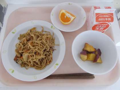 ソース焼きそば 大学芋 せとか 牛乳