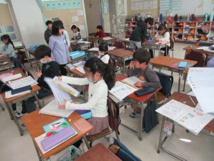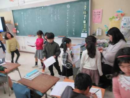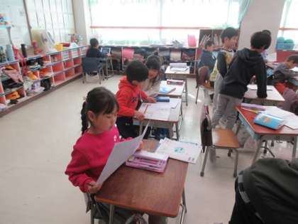 1年3組に行くと、テスト直しをしたり、作文を書いたりしています。