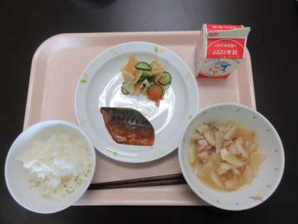 ごはん サバの味噌煮 シャキシャキ野菜 けんちん汁 牛乳