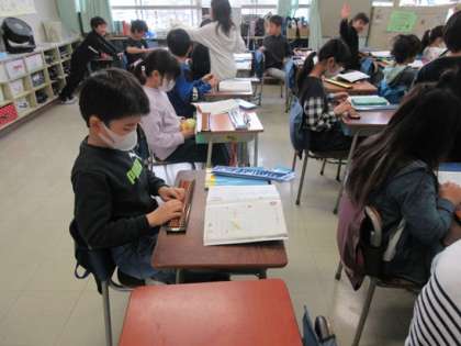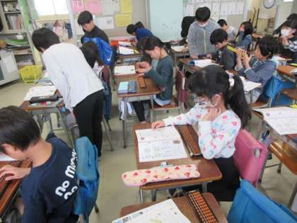 そろばんの使い方を学習しています。最近は、そろばん塾も少なくなり、習っている子どもも少ないですね。