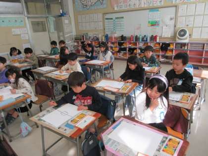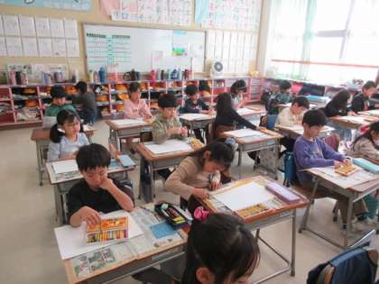 1年3組の図工の時間です。