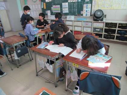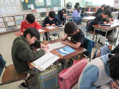 3けた×3けたのひっ算のプリントに取り組んでいました。